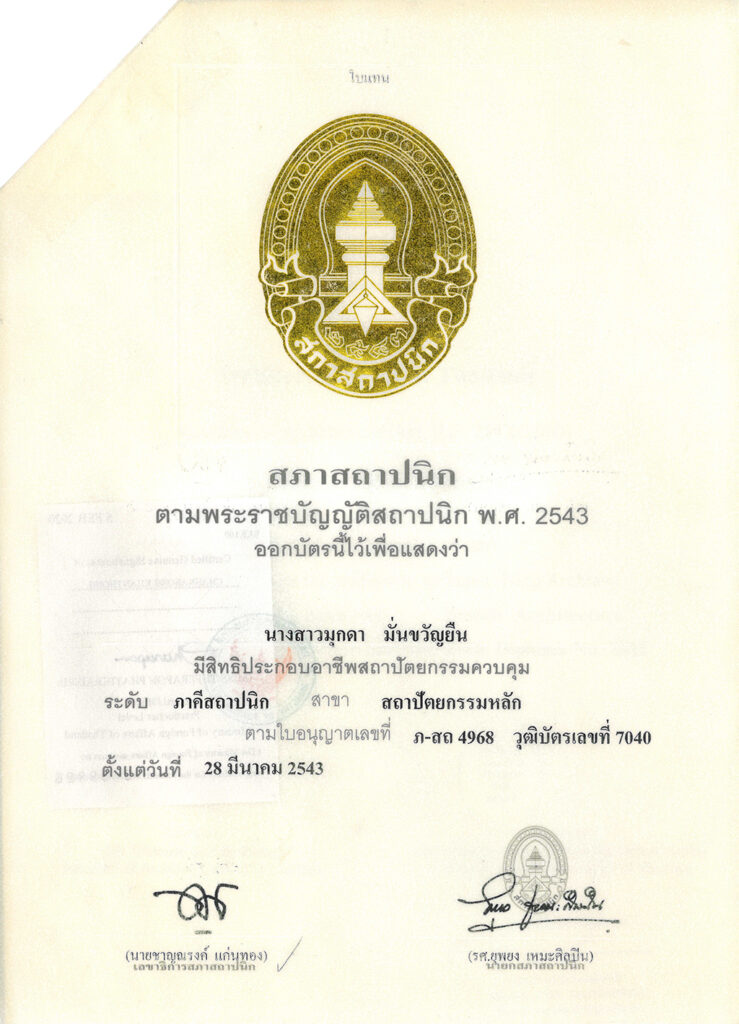ใบประกอบวิชาชีพ จากสภาสถาปนิก