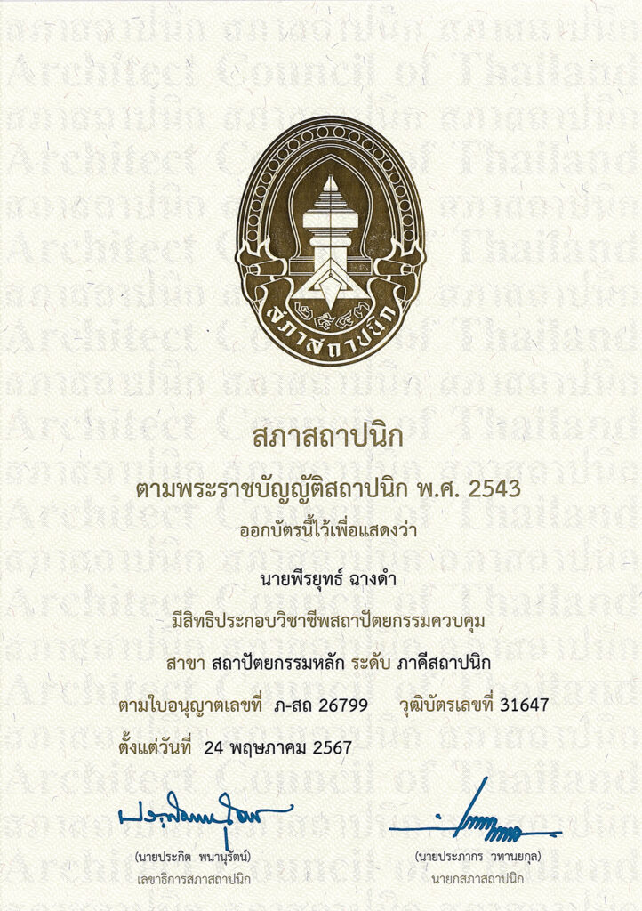 ใบประกอบวิชาชีพ จาก สภาสถาปนิก