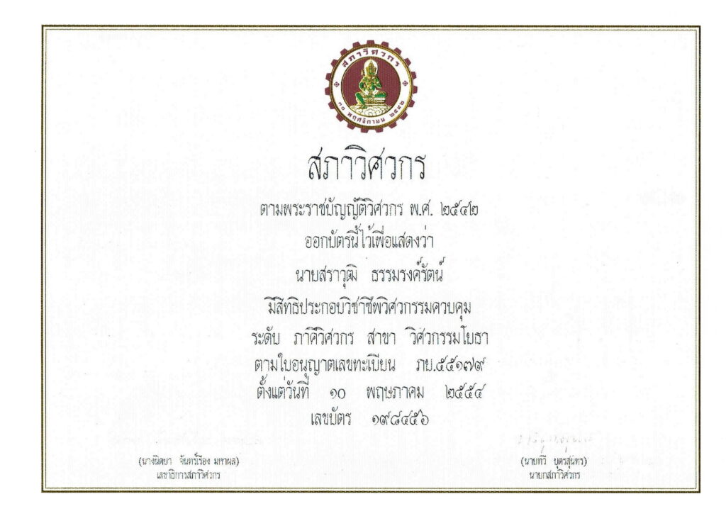 ใบประกอบวิชาชีพ จากสภาวิศวกร